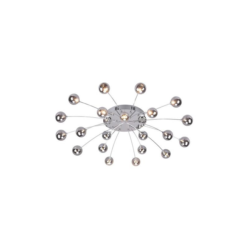 Produttore: Trio Nome: BULLETSimbolo: 641412106 Parametri altezza (mm): 155 altezza paralume (mm): diametro (mm): 965 diametro paralume (mm): larghezza (mm): profondità (mm): numero di sorgenti: 21 tipo di base: LED integrato potenza massima della sorgente: 1 Voltaggio: 230 V Sorgente inclusa: 21 x LED 1 W, 170 lm, 3000 K Dimmerabile: Sì, tramite un tipico interruttore a parete Colore: argento e sfumature argento Materiale: metallo/vetroIP: 20