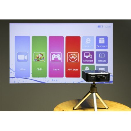 Innovativo E05 mini proiettore DLP con android 4.4, CPU quadcore, wifi e 120 lumen. Compagno ideale durante attività ricreative, così come per viaggi d'affari.