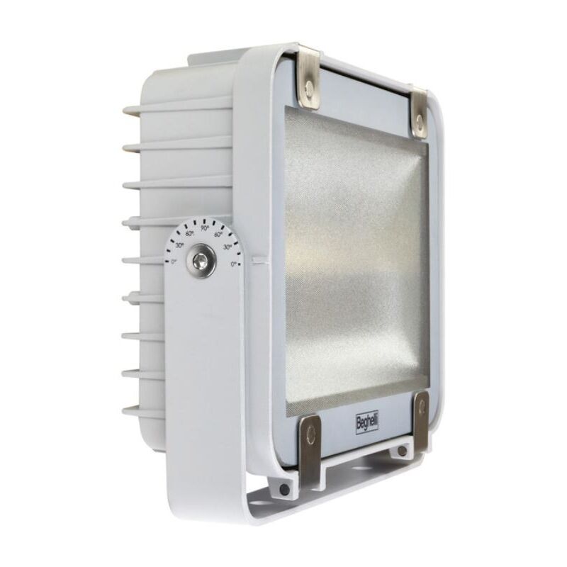 Proiettore Beghelli LED, con le seguenti caratteristiche: Alimentazione 230 Vac ±10% 50 Hz Sorgente luminosa: LED Potenza Watt 30 Potenza LED 15 Kelvin 4000 (luce bianca naturale) Quantità LED: 33 Lumen 1800 Grado di protezione IP66 Classe energetica A++ Ottica: simmetrico/asimmetrico Un apparecchio di estrema semplicità e dalle dimensioni contenute, caratterizzato da grande polifunzionalità. Indicato sia come proiettore che come riflettore, coniugando sempre design, robustezza e caratteristiche illuminotecniche superlative. Nello stesso prodotto c'è la possibilità di ottenere una diffusione luminosa sia simmetrica che asimmetrica, realizzabile grazie ad un riflettore a moduli scomponibili che offre anche ottime caratteristiche antiabbagliamento e di controllo del fascio luminoso. Un progetto ottico innovativo, generato partendo dall'efficienza e dal controllo dell'abbagliamento, dove le ridotte dimensioni del corpo sono in antitesi con l'intensità del fascio luminoso. Inoltre