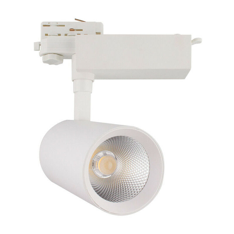 Questo faretto led da 30W combina un design semplice ed elegante a delle prestazioni molto interessanti e ciò lo rende un prodotto perfetto per completare un sistema di illuminazione a binario. La sua sorgente luminosa offre una luminosità ad alta efficienza. La luce che emette, distribuita in un angolo di 36°, è di ottima qualità. E' fabbricato in alluminio e presenta una finitura in bianco che si adatta a qualsiasi stile. Si distingue per la facilità della sua installazione e la sua lunga durata di circa 30.000 ore. E' del tutto orientabile per cui si può cambiare l'illuminazione in funzione delle necessità del momento. Questo tipo di illuminazione LED è pensata per mettere in evidenza determinati elementi decorativi e prodotti contribuendo, cosi, alla creazione di molteplici ambienti. Il suo uso più frequente è in spazi commerciali come showroom, negozi di abbigliamento, di arredamento, spazi con differenti ambienti, saloni, centri commerciali e, in generale, in luoghi che