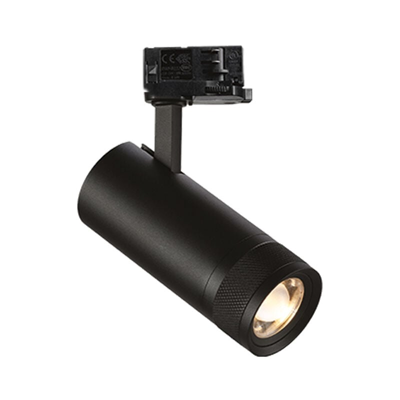 Collezione Eos ORGANIZZA LA TUA LUCE Faretto regolabile e dimmerabile montato su binario per interni con sorgente LED integrata ed emissione di luce diretta.. Proiettore cilindrico in alluminio estruso con ottica simmetrica e fascio di apertura variabile da stretto ad ampio (20°-55°), adatto per installazione su binario trifase.