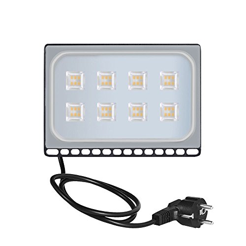 Proiettore LED esterno Floodlight Faretto ultra-sottile con presa faro interno e esterno impermeabile IP67, Bianco caldo, 50W