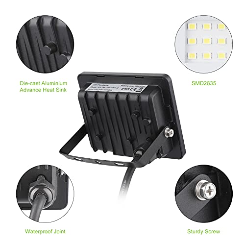 1. Super luminoso e a risparmio energetico: con 15 chip SMD 2835 LED, questa luminosità del proiettore LED per esterni è fino a 1000 lumen di uscita e ha una diffusione del fascio largo 120 gradi. Questa luce di inondazione a LED da 10 W è equivalente alle luci alogene tradizionali da 80 W, consente di risparmiare oltre l'85% del costo dell'elettricità.