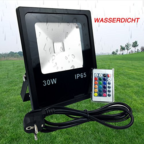 Proiettore 30W LED RGB Faretto esterni (Telecomando incluso / 1,5 metri di filo / Impermeabile IP65 / Prese Europee)