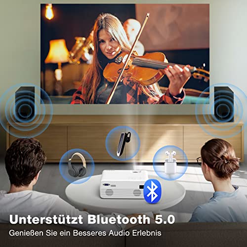 【Bluetooth 5.0 e stereo Hi-Fi】Il nostro Full HD proiettore Bluetooth integrato nell'ultimo chip Bluetooth 5.0 in grado di connettere in modalità wireless l'altoparlante Bluetooth, le cuffie, non preoccuparti di perdere il sonno della tua famiglia. Groview home cinema proiettore smartphone Gli altoparlanti stereo HiFi da 5 W integrati offrono un suono più potente e stereo per la tua festa.