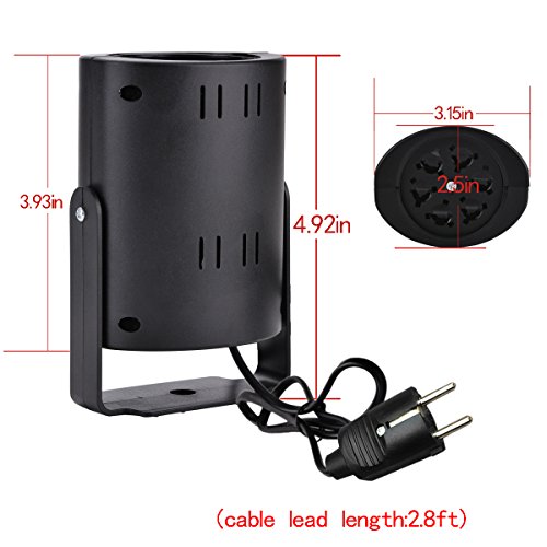 Questa rotazione accende torni con fino a 5 vetrini di reticolo (fiocco di neve, cuore, appeso regalo decorazioni per Natale, cuore cupido per i regali di nozze, Cena a lume di candela,differenti per il compleanno),Progettato per Natale, Capodanno, San Valentino, compleanno, festa, vacanze, Halloween, locali notturni ecc.Indoor Motion Spotlight mostrano ampiamente usato in discoteca, Club, KTV, pub, bar, banchetti, Prato, windows, portico, cancello, ecc
