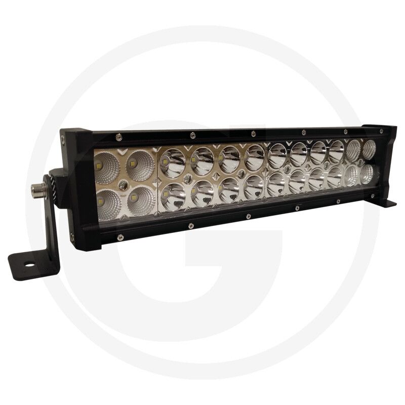 PROIETTORE DA LAVORO BARRA LUMINOSA A LED PER ILLUMINAZIONE A RAGGIO DI PROSSIMITA' E RAGGIO LARGO FLUSSO LUMINOSO TEORICO: 6480 lumen FLUSSO LUMINOSO EFFETIVO: 5313 lumen CARATTERISTICHE TECNICHE: Tensione nominale (V): 12 / 24 Tensione (Volt): 10 - 30 Potenza assorbita (W): 72 Tipo lampada: LED Flusso di luce teorico (lm): ≈6480 Tonalità di luce (K): ≈6000 Misura struttura (mm): 90 Materiale: Corpo: Alluminio, con alette di raffreddamento;