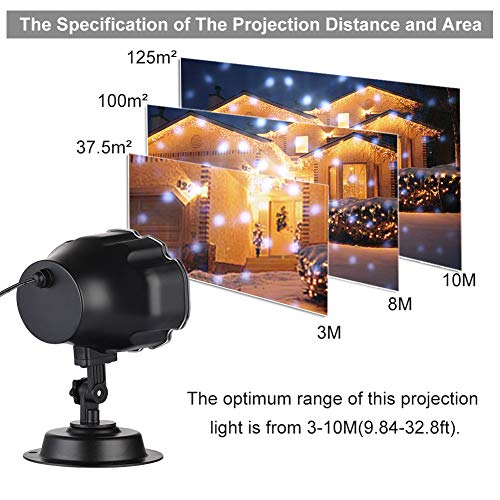 ❉【Luminosità & chiarezza eccellenti】: proiezione di Caduta Della Neve per un corretto funzionamento fornire un ampio angolo di luce, con un cavo di alimentazione lungo 5 m. Distanza di proiezione: 3-10 m, distanza ottimale: 5 m. La proiezione può avere un'area di 60 ㎡. Distanza di proiezione: 8m. È possibile utilizzare la manopola per ruotare la lampada di 180 gradi su / giù. (È consigliata la proiezione in un ambiente scuro oppure su superfici scure)