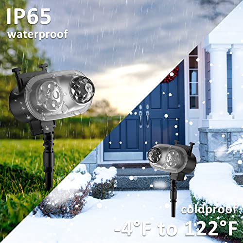 Proiettore Natale Esterno, Lampada Proiettore LED con 16 Diapositive e 10 Effetti di Luce d'Onda Telecomando per Interni/Esterni/Feste/Matrimoni/Decorazioni da Giardino/Atmosfera da Campeggio