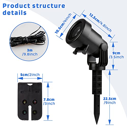⛪【IP65 impermeabile e resistenza agli agenti atmosferici estremi】: Il proiettore natalizio impermeabile IP65 può resistere a forti piogge, neve fredda e clima caldo. Lo spesso guscio di plastica rinforza ulteriormente la copertura antipioggia e protegge lampada di Natale. Il filo lungo impermeabile, il vetro di alta qualità e il picchetto di terra in plastica resistente all'usura rendono la lampada del proiettore più resistente e più forte.