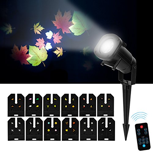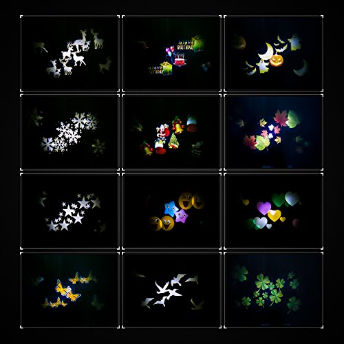 Luci Proiettore Natalizio con 12 Lenti Sostituibile y Telecomando Proiettore Lampada Spotlight LED Decorative Luci Lampada Esterno Impermeabile IP44 per Giardino Prato Cortile Decorazione Divertimento Effetti Luce per NATALE Festa Paesaggio Matrimonio -Duomishu