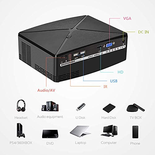 Chip LCD 4inch, risoluzione 1280x720, 2200 lumen alta luminosità: l'ultima LCD HD Display Technology, questo di fascia alta mini proiettore è molto più luminoso e più tagliente di altri proiettori a LED. Si può godere di momenti felici con la famiglia e gli amici in qualsiasi momento.