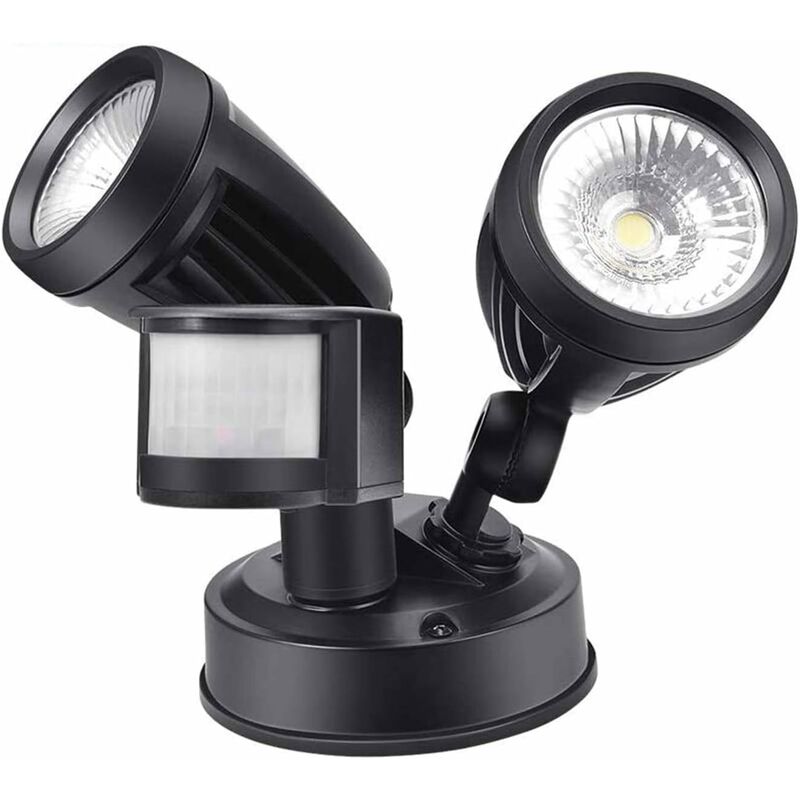 sicurezza ha un livello di sicurezza avanzata, con un sensore di movimento a infrarossi a 180°. La luce del sensore di movimento a LED per esterni con rilevatore a infrarossi integrato, il raggio di rilevamento massimo è di 8 m. AUTO-ON quando viene rilevato un movimento, Auto-OFF dopo aver raggiunto l'ora impostata. 【Super luminoso e 【Risparmio energetico】 Questa luce con sensore di movimento dispone di due teste luminose super luminose con alluminio non metallico di alta qualità, unità LED da 26 W, produce una luce a incandescenza di 2700LM. 85% di risparmio in più energia, vita media oltre 50.000 ore. Funzione Smart Sensor, non è necessario tenerlo continuamente in mano tutta la notte, risparmiando sui costi energetici. 【Testine e sensori regolabili flessibili】 con 2 teste regolabili forniscono una copertura della luce più ampia. 2 piccole teste possono essere ruotate sinistra e destra dritto 360°, su e giù 180°. L'intestazione