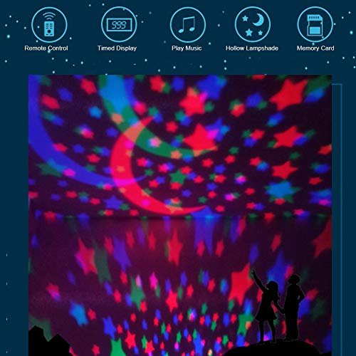 Proiettore a stelle Proiettore notturno Telecomando e timer Design Lampada da proiezione, 12 brani luminosi incorporati 360 gradi rotanti 8 luci colorate per bambini Bambini Feste di compleanno