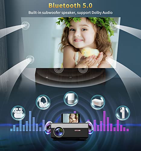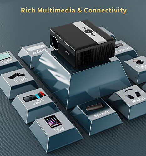 Goditi la meravigliosa esperienza visiva con 50-200 pollici e una distanza di proiezione di 5,9-21,91 piedi. Puoi regolare le dimensioni di proiezione in base alle dimensioni della stanza. Dotato di una funzione di correzione trapezoidale di ± 15 °, rendendo facile la regolazione dell'immagine. Il proiettore cinematografico ha due altoparlanti integrati, così puoi goderti l'audio stereo Hi-Fi.