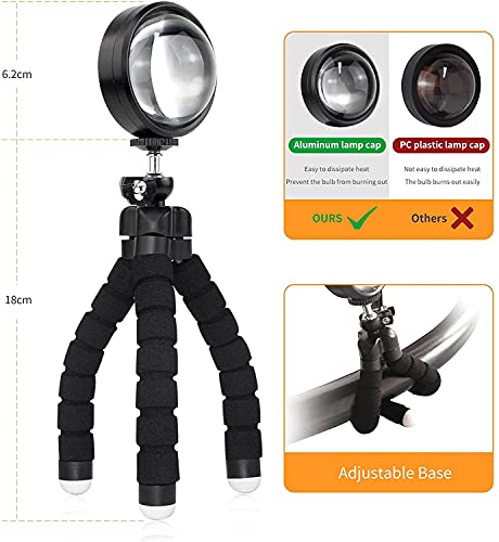 【Spostamento girevole pronto per il treppiedi】Questo proiettore tramonto è molto facile da usare, basta collegare e riprodurre. Le luci ad anello sono inoltre dotate di un treppiede con cavo di alimentazione USB da 1,8 m. La lampada a LED ad alta efficienza energetica e senza abbagliamento ha una lunga durata. Nessuna preoccupazione per i problemi che si rivolgono alla sezione della testa e causano il prodotto a causa di frequenti movimenti, usura.