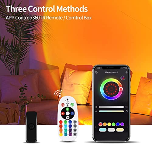 Proiezione lampada Sunset, telecomando APP, sincronizzazione musicale, luce notturna LED RGB arcobaleno rotazione di 360 gradi per fotografia/festa/decorazione della casa/camera da letto soggiorno