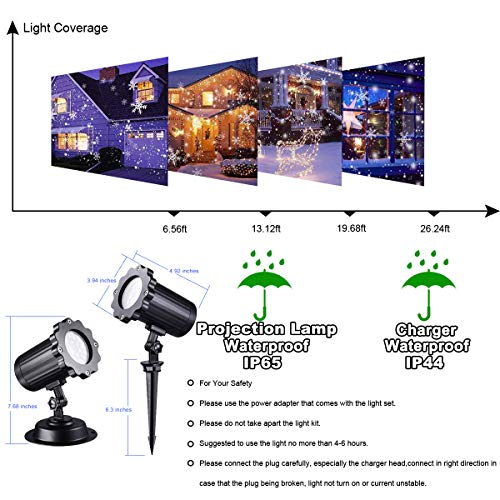 Proiettore sicuro: Il nostro proiettore con perle LED ad alta luminosità e lamelle morbide è di alta qualità. Da una finestra si vede come scendono decine di fiocchi di neve e coprono le strade intorno a voi, è uno dei momenti più magici della stagione. Vale la pena il vostro possesso.