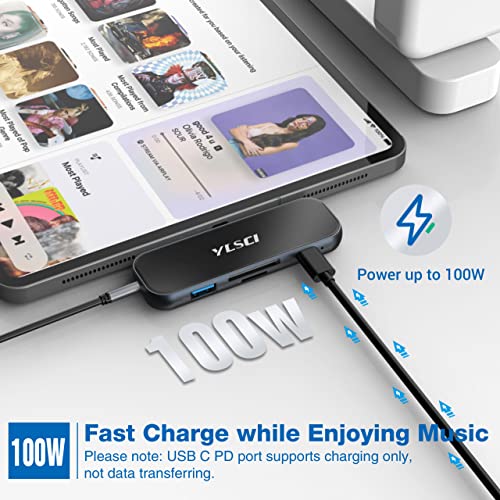 Hub USB C per iPad Pro/iPad Air 4, YLSCI 6 in 1 adattatore USB C con 4K HDMI, USB3.0, 3.5mm Audio/Mic, lettore di schede SD/TF e porta di ricarica PD compatibile con MacBook Pro/Air