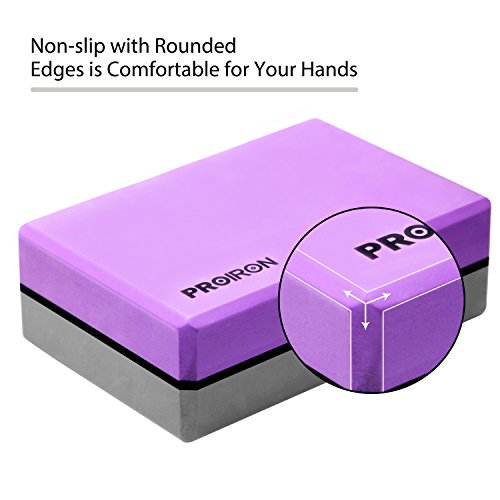 PROIRON Blocchi Yoga - Blocco Yoga Eva Schiuma Supporto Blocco per Yoga, Pilates e Stretching -Venduto singolarmente (Viola + Grigio)