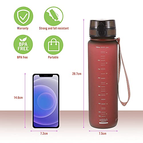PROIRON Borraccia Sportiva 1 litro a Prova di perdite - Bottiglia in Tritan per Bici, Palestra, Scuola, Ciclismo, Ufficio, Senza BPA (Rosso)