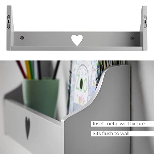 Haus Projekt Mensola a Parete per Bambini Cuore Scaffale Libreria Bambini, Mensole Cameretta, Organizer, Soluzione di Stoccaggio Multiuso a Parete, (Pacchetto 2, Grigio) 50x10x16cm