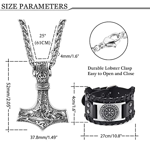 ❤Materiale❤ La collana Mjolnir è realizzata in acciaio inossidabile, priva di nichel, si mantiene lucida per tutta la vita. Dimensioni del ciondolo: 4,4 * 3,3 CM, lunghezza della catena 60 CM. La dimensione del braccialetto Viking è 11,5 * 1,6 pollici. Questo braccialetto in pelle medievale è una perfetta combinazione di lavorazione in metallo e catena in corda di cuoio con un design a nodo celtico. La lavorazione del metallo è un amuleto nordico inciso, che è uno stile di gioielleria gotica.