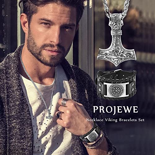 PROJEWE Collana Vichinga Uomo Bracciale Vichingo Collana Martello Thor Collana Acciaio Inossidabile Vichinga Vegvisir Collana Martello di Thor Bracciale Gioielli Vichinghi
