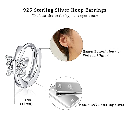 PROJEWE Orecchini Farfalla in Argento Sterling 925, Set di Orecchini a Cerchio Huggie Leggero Orecchini ad Anello Ipoallergenici, Orecchini Animali Orecchini di Ragazze Donne delle