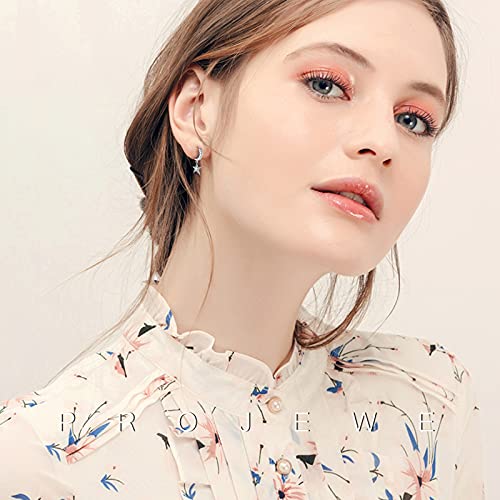 PROJEWE Orecchini Pendenti Cerchio in Argento Orecchini con Stella Orecchino Zirconi Piccoli Orecchini a Cerchio con Ciondolo Regali per le Donne