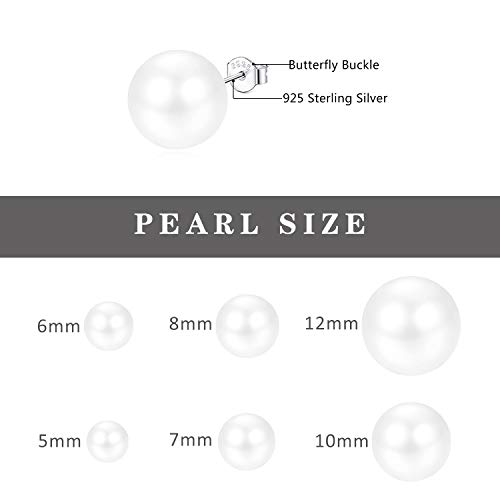 PROJEWE 3-6 Paia Perla D'acqua Dolce Orecchini In Argento Sterling per Donna Ragazze Orecchino Anallergico Perla Con Confezione Regalo 5MM 6MM 7MM 8MM 10MM 12MM
