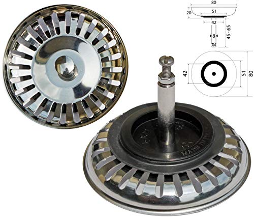 ProKIRA - Colino universale 3,5 pollici (Ø 80 mm), per lavandini con comando eccentrico/acciaio INOX