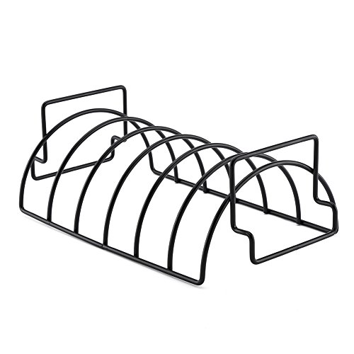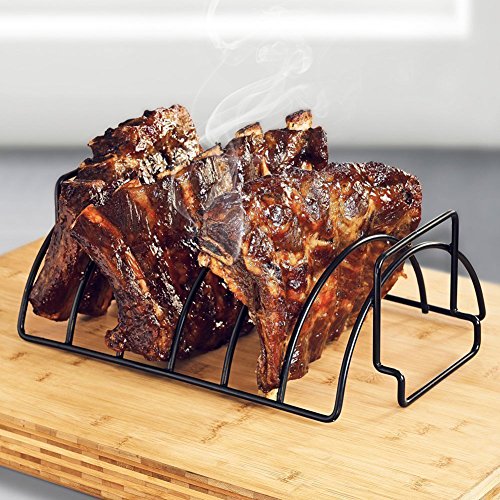 Universale: progettato per l' uso in fumatori e sulla parte superiore del gas e griglie a carbone. Rib Rack sono un poco ingombrante modo di cucinare più lastre di carne, ma anche un ottimo modo per migliorare la cottura lenta o carne fumo.