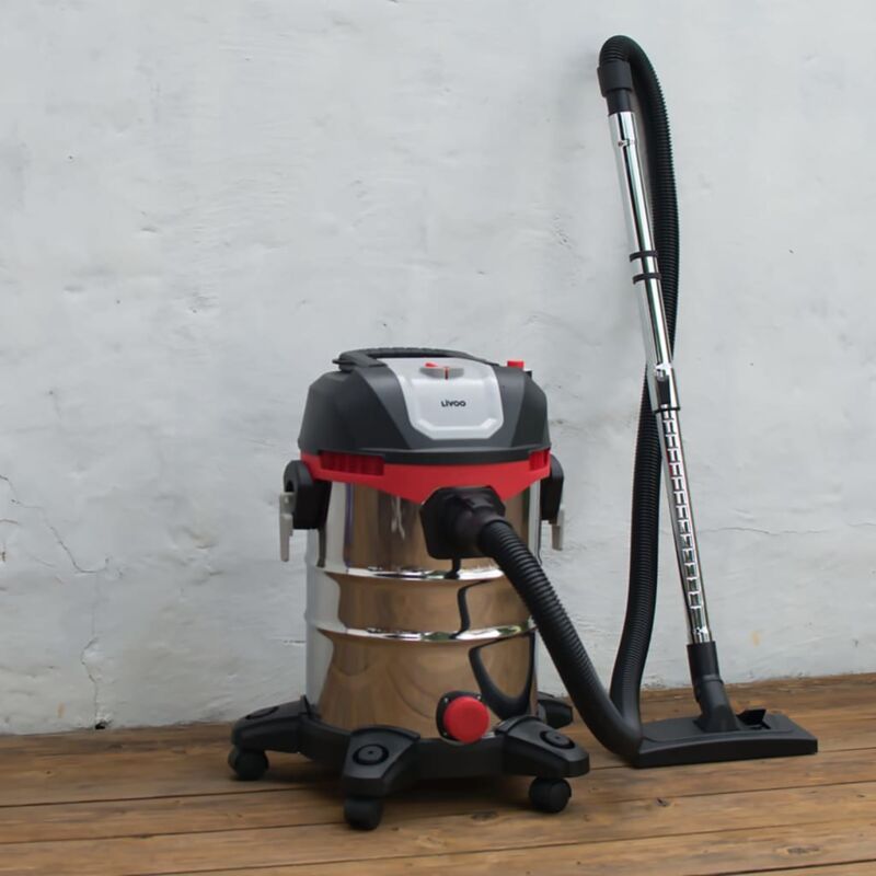 Questo aspirapolvere versatile a umido e a secco della Livoo è perfetto anche per i vostri lavori di pulizia più difficili! Il serbatoio in acciaio inossidabile ha una capacità di 23 litri e offre molto volume per una vasta gamma di attività di pulizia in tutta la casa e nel garage. L'aspirapolvere è dotato anche di una funzione di soffiaggio. Aiuta a sgombrare le foglie morte, la polvere negli angoli, ecc. Il sistema di pulizia del filtro vi permette di avere un'elevata potenza di aspirazione, grazie ad un semplice interruttore. Il comodo sistema di apertura tramite gancio consente un semplice svuotamento e smaltimento delle acque reflue. È inoltre progettato con un manico e le ruote per una facile manovrabilità e trasporto. Grazie al pratico vano portaoggetti per piccoli accessori, tutti i componenti possono essere tenuti a portata di mano sopra l'aspirapolvere. Colore: Nero Materiali: ABS e acciaio inossidabile Dimensioni: 45 x 45 x 69 cm (L x P x A) Diametro serbatoio: 30 cm