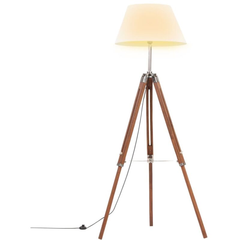 Illuminate il vostro spazio abitativo con la nostra lampada da terra a treppiede in stile retrò! Questa lampada a faretto dal design vintage attira l'attenzione in ogni interno. La lampada è dotata di una base a treppiede sormontata da un paralume. Le gambe sono realizzate in legno massello di teak, garantendo una tenuta sicura. È possibile regolare l'altezza da 100 cm a 141 cm in base alle proprie esigenze. È dotato di un interruttore on/off sul cavo per facilitarne l'uso. La lampada da terra ha un attacco E27 per una lampadina da massimo 25 watt. Potete scegliere e installare lampadine E27 con vari colori di luce. Nota: le lampadine non sono incluse. Colore base: Marrone miele Colore paralume: Bianco Materiale: Legno massello di teak, metallo Dimensioni: 64 x 59 x (100-141) cm (L x P x A) Diametro paralume: 26 cm / 44 cm Lunghezza del cavo: 180 cm Alimentazione: 220 - 240 V~, 50Hz Potenza (max): 25 W Tipo di attacco: E27 Con interruttore a pedale Regolabile in altezza La lampadina