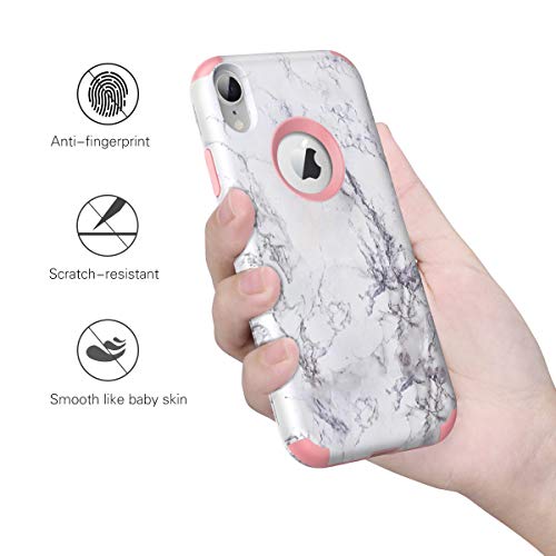 Prologfer Cover iPhone XR Marmo 360 Gradi Full Body Protezione Custodia iPhone XR Rigida e Silicone Morbido Shockproof Hybrid 3 in 1 Protettiva Bumper Coper ture Caso per iPhone XR Oro Rosa
