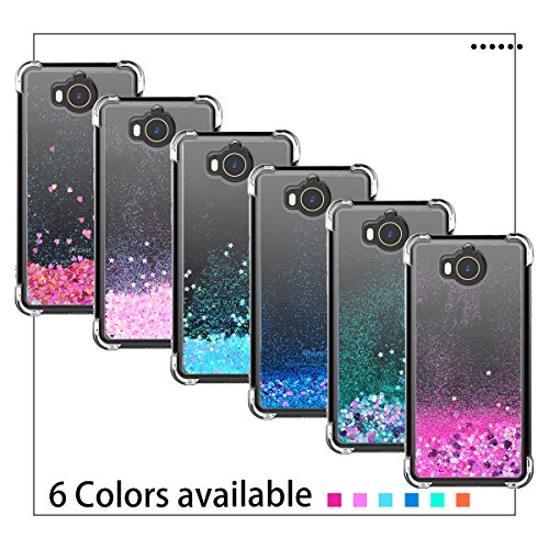 Prologfer Huawei Y5 2017 Cover Trasparente Glitter Quicksand Liquido Stella Amore Huawei Y6 2017 Custodia Silicone Soft Flessibile Elegant Belle Protettiva Antiurto Ultraslim Bumper TPU Gel Gomma Morbido Protezione Girl Brillantini Donna Copertura Caso per HuaWei Y5 2017 / HuaWei Y6 2017 Rosa