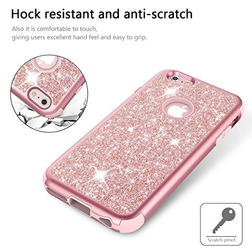 Prologfer iPhone 6 6s Cover 3 in 1 Glitter iPhone 6 6s Custodia Case Rigida Elegant Backcover Hard con Plastica Bumper Belle Protettiva Protezione Duro Antiurto Ultraslim Coperture Girl Brillantini Donna Case per Apple iPhone 6 6s 4.7' Oro Rosa