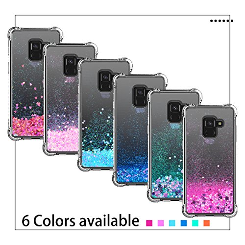 Prologfer Samsung Galaxy A8 2018 Cover Trasparente Glitter Quicksand Liquido Stella Amore Samsung A5 2018 Custodia Silicone Soft Flessibile Elegant Belle Protettiva Antiurto Ultraslim Bumper TPU Gel Gomma Morbido Protezione Girl Brillantini Donna Copertura Caso per Samsung Galaxy A5 2018 A8 2018 Rosa