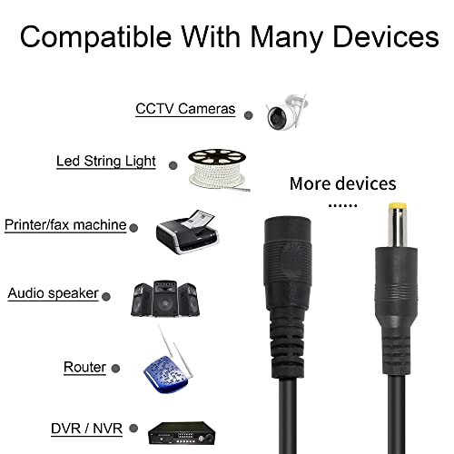 【Spina CC da 5,5 mm x 2,1 mm】: questo cavo di prolunga CC funziona solo con adattatore di alimentazione con spina da 5,5 mm x 2,1 mm e non altre dimensioni. Prima di acquistare, controllare le dimensioni della spina di alimentazione.