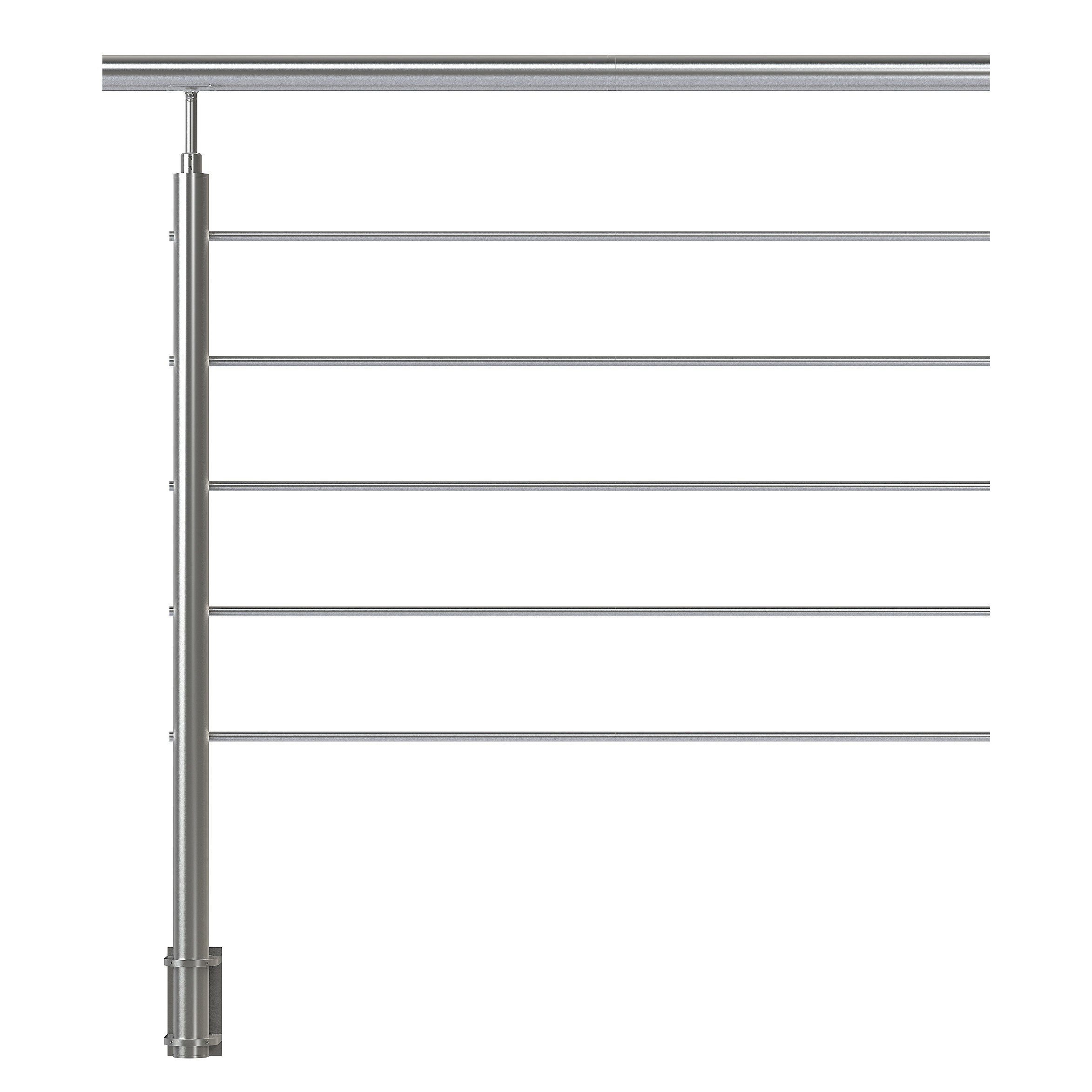 In acciaio inossidabile AISI 304, per il tuo balcone o la tua scala, perfetta per l'esterno e l'interno, senza saldature tra gli elementi e con soluzioni di fissaggio regolabili che consentono di adattarsi a tutte le situazioni.. Adatto per fissaggio laterale. È disponibile un pannello di protezione in plexi antiurto, acquistabile separatamente, per rendere la ringhiera non scalabile da parte dei bambini. Per rendere la ringhiera non scalabile da parte dei bambini è acquistabile separatamente un pannello di protezione in plexi antiurto.. Resistenza alla spinta orrizzontale: 100 kg/ml. Installazione all'esterno ed all'interno, eccetto ambienti marini