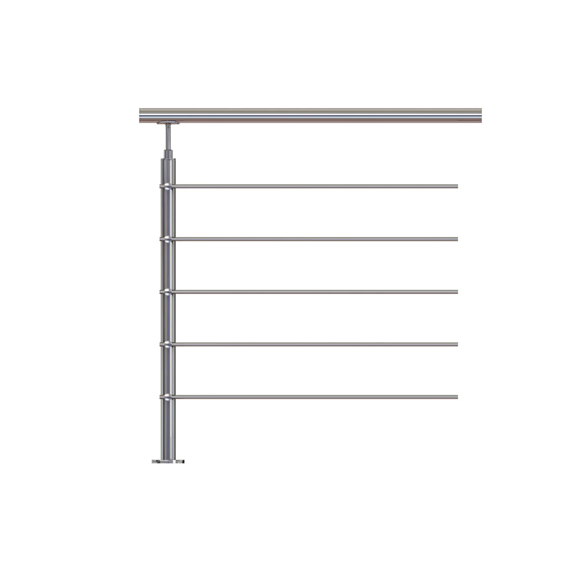 In acciaio inossidabile AISI 304, per il tuo balcone o la tua scala, perfetta per l'esterno e l'interno, senza saldature tra gli elementi e con soluzioni di fissaggio regolabili che consentono di adattarsi a tutte le situazioni.. Adatto per fissaggio a pavimento. È disponibile un pannello di protezione in plexi antiurto, acquistabile separatamente, per rendere la ringhiera non scalabile da parte dei bambini. Per rendere la ringhiera non scalabile da parte dei bambini è acquistabile separatamente un pannello di protezione in plexi antiurto.. Resistenza alla spinta orrizzontale: 100 kg/ml. Installazione all'esterno ed all'interno, eccetto ambienti marini