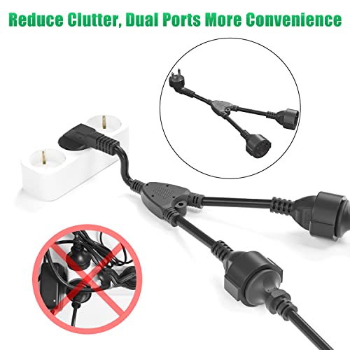Cavo di Prolunga con Contatto di Protezione, Cavo in Plastica AC Schuko Y Cavo Corto con Prese a 2 Pieghe, Doppia Spina per Pesa IP20 per Casa, Ufficio, Esterno, 3 x 1,5mm², fino a 250V/16A, Nero