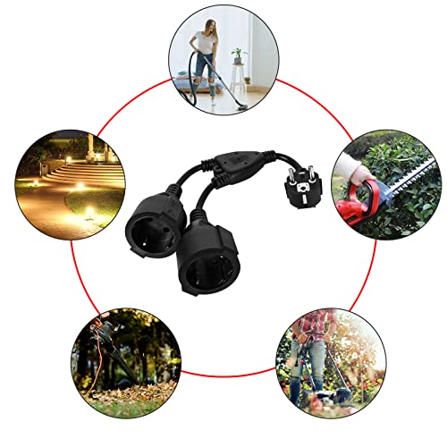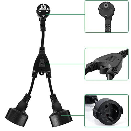 Cavo di Prolunga con Contatto di Protezione, Presa Multipla, Doppia Spina per Pesa, Cavo in Plastica AC Schuko Y Cavo Corto con Prese a 2 Pieghe, per Casa, Ufficio, Esterno, Fino a 250V/16A, Nero