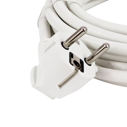 Dettagli tecnici dell'estensione del cavo di alimentazione: cavo H05VV-F 3G1,5 mm². Portata massima: 3680 W, 230 V/50 Hz, 16 A. Peso: 500 g. Colore: bianco