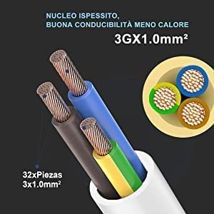 3 Fili che compongono il cavo sa 1 mm di diametro con una portata tranquilla fino a 2500 watt
