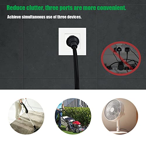 Cavo di Prolunga Elettrica da Giardino con 3 Prese, 45cm Prolunghe Elettriche Presa da IP44 Esterno Impermeabile, 250V Triplo Prolunga con 3 Contatti di Protezione da Contatto (Nero)