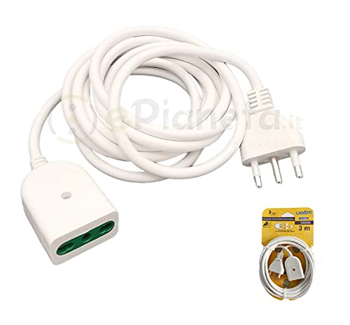 Prolunga elettrico 3 5mt con spina piatta presa bipasso 10 16A 250V cavo bianco lineare 3G1 (5 Metri)