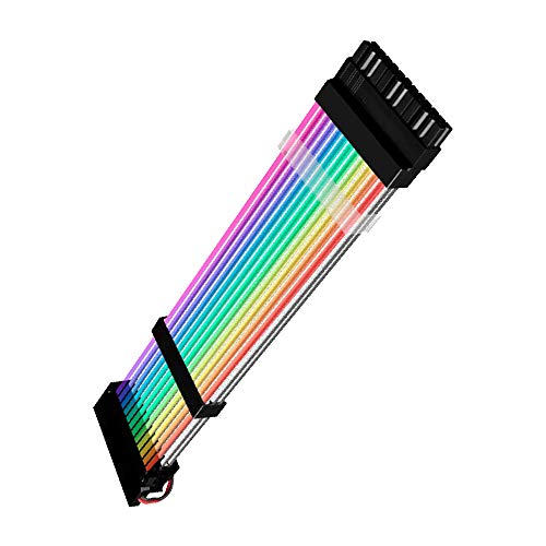 Noua Vurx Cavo Prolunga PSU Estensione Alimentazione per Scheda Madre 24 Pin Sleeved Cable 250mm, Rainbow Fixed