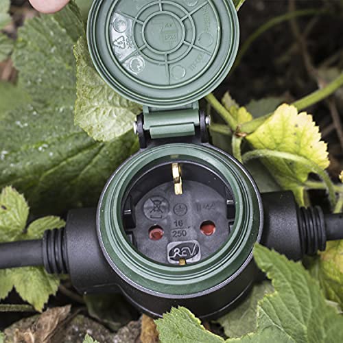 Cavo di prolunga da giardino IP44, 10 m, con 3 prese ogni 2,5 m, con 3 picchetti, ideale come fonte di alimentazione per l'illuminazione del giardino